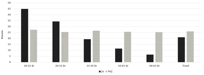 Det skiljer sig åt i åldersgrupperna om man tvekat inför att söka jobb på grund av att kraven har känts för höga.